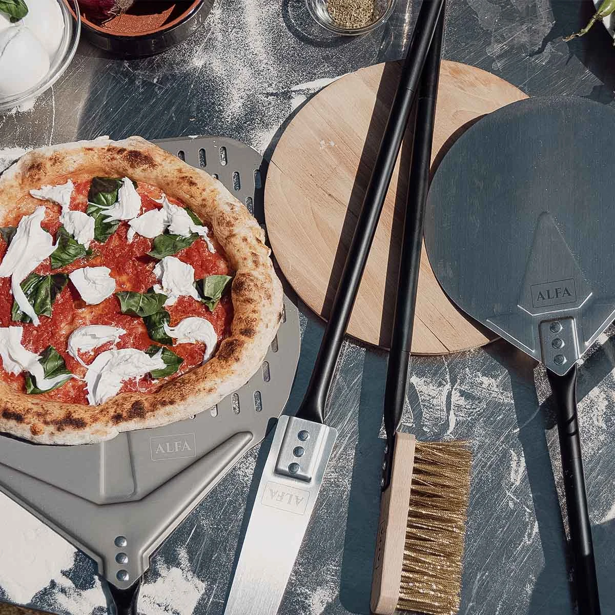 Ihr wollt die perfekte Pizza backen? Dann ist das Pizzaiolo-Set nach dem Pizzaofen das zweitwichtigste, was Ihr dafür braucht. Sowohl nützliche Werkzeuge, die Ihr für die Zubereitung braucht, als auch Accessoires sind darin enthalten. Alle Teile sind auch . Werdet selbst zu Pizzabäckern und stattet Euch mit den passenden Zubehörteilen für Euren Pizzaofen aus!