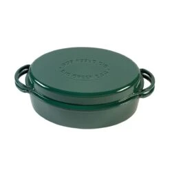Der Big Green Egg Dutch Oven ist aus massivem Gusseisen gefertigt und eignet sich ideal für die Zubereitung von zahlreichen Gerichten. Das Besondere an diesem Topf: Der Dutch Oven ist entgegen vergleichbarer Modelle von innen und außen emailliert. Das spart neben der Zeit für Reinigung und Pflege auch das Einbrennen vor der Benutzung. Ebenso kann der Topf bedenkenlos mit Wasser und Spülmittel gereinigt werden ohne etwas zu beschädigen. Genießen Sie mit dem emailliertem Big Green Egg Dutch Oven die vielen Vorteile der beliebten Gusstöpfe, ohne auf die aufwendige Pflege und Reinigung achten zu müssen! Der ovale Dutch Oven kann auf nahezu jeder Kochfläche verwendet werden – egal ob es sich um einen Holzkohlegrill, Gasgrill, Keramikgrill, Backofen oder eine Feuerstelle handelt. Der Bräter heizt sich gleichmäßig auf und gibt die Hitze an die Speisen im Inneren weiter.