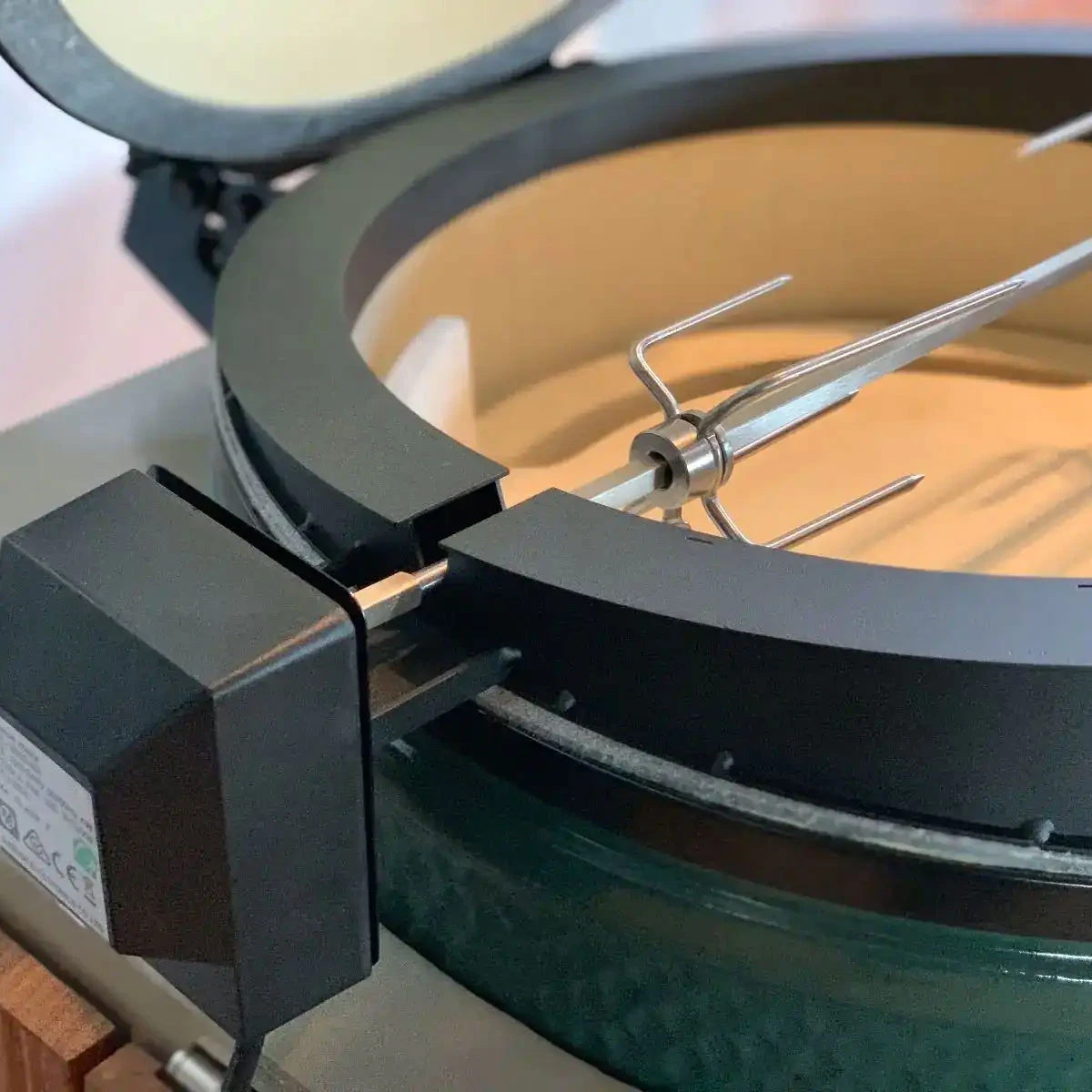 Die elektrische Rotisserie LetzQ ist eine ideale Ergänzung des Big Green Egg und sorgt für noch mehr Abwechslung beim Grillen mit Eurem Kamado. Für die Zubereitung von Hähnchen, Spießbraten oder Gyros ist der dickwandige Keramikgrill perfekt geeignet, da die Temperaturen besonders konstant gehalten werden und Euer Grillgut ausgesprochen gleichmäßig und saftig gart.