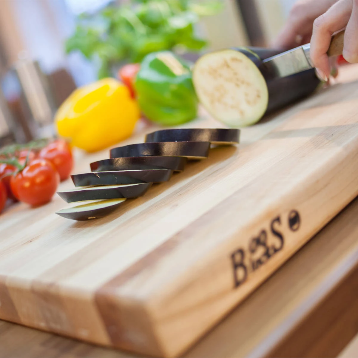 Die Boos Blocks bieten robuste, langlebige Qualität in einer . Jedes hochwertige Holzbrett der Serie kann viele Jahre als hygienisch einwandfreies, zuverlässiges Küchenutensil für die Lebensmittelvorbereitung dienen. Die ChefLite Kollektion ist 100 % „Made in USA“. Sie wird umweltbewusst aus erneuerbarem nordamerikanischem Ahorn-Hartholz hergestellt – eine grundsolide Langholz-Konstruktion mit widerstandsfähiger, messerschonender Arbeitsfläche.