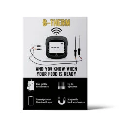 Mit dem drahtlosen Bluetooth-Thermometer und der dazugehörigen Mobile App habt Ihr die Temperatur in Eurem Borniak Räucherofen stets im Blick. Dank des magnetischen Gehäuses könnt Ihr das Thermometer auf Metalloberflächen befestigen. Im Lieferumfang sind 2 Temperaturfühler enthalten, insgesamt können maximal 6 Fühler angeschlossen werden. Über die App könnt Ihr dann einen Alarm einstellen, wenn Euer Fleisch fertig geräuchert oder gegart ist.