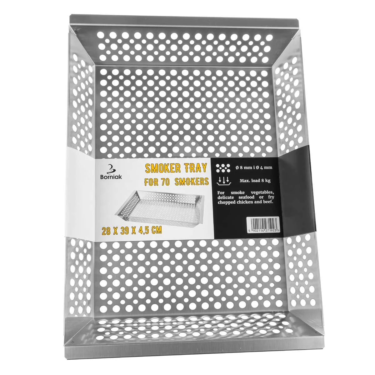 Der gelochte Korb aus ist das perfekte Zubehör für jeden, der gerne Gemüse, Meeresfrüchte, kleingeschnittenes Fleisch oder Obst räuchert.