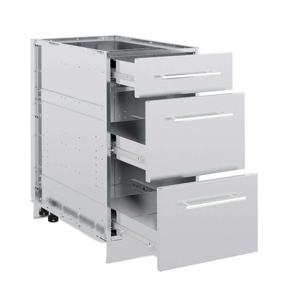 In dem Cabinet Schubladenschrank bringt Ihr alles unter, was Ihr bei der Vor- und Zubereitung Eurer Grillzutaten braucht. bieten reichlich Stauraum für Zutaten, Geschirr, Besteck, Saucen und Gewürze sowie Unterbringungsmöglichkeiten für vielfältiges Grillzubehör. Aus und mit massiven höhenverstellbaren Füßen ist das Schrankmodul äußerst hochwertig und stabil. Es wird bereits voll montiert geliefert, so dass einem problemlosen Aufbau nichts im Wege steht.