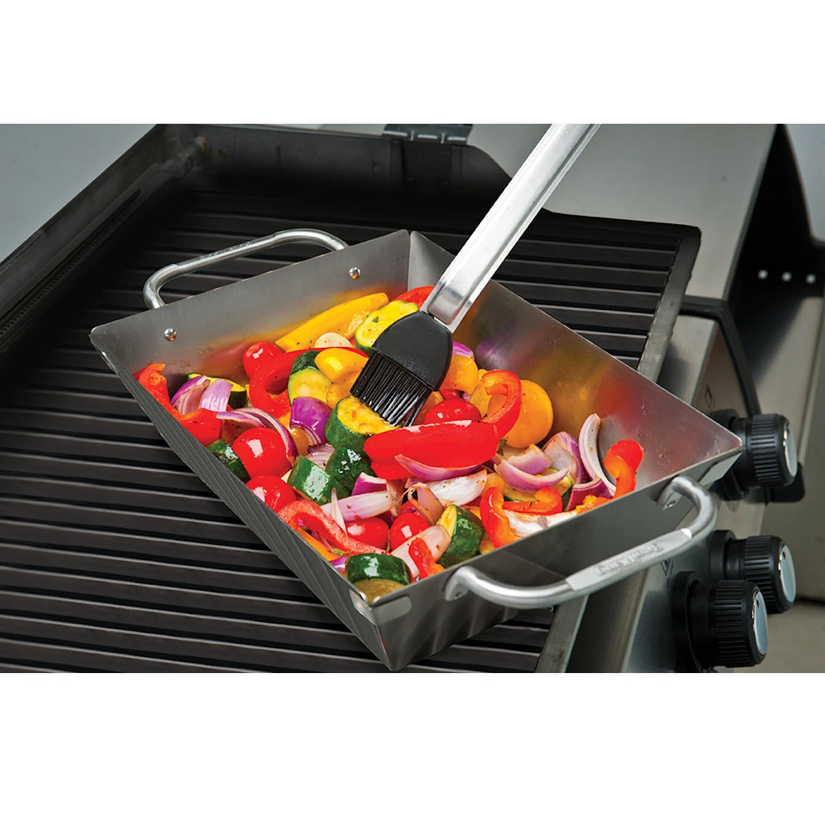 Der Broil King Wok mit Löchern aus 1,2 mm dickem Edelstahl und 10 mm dicken Edelstahl Griffen ist das perfekte Zubehör für den Einsatz an Eurem Grill.