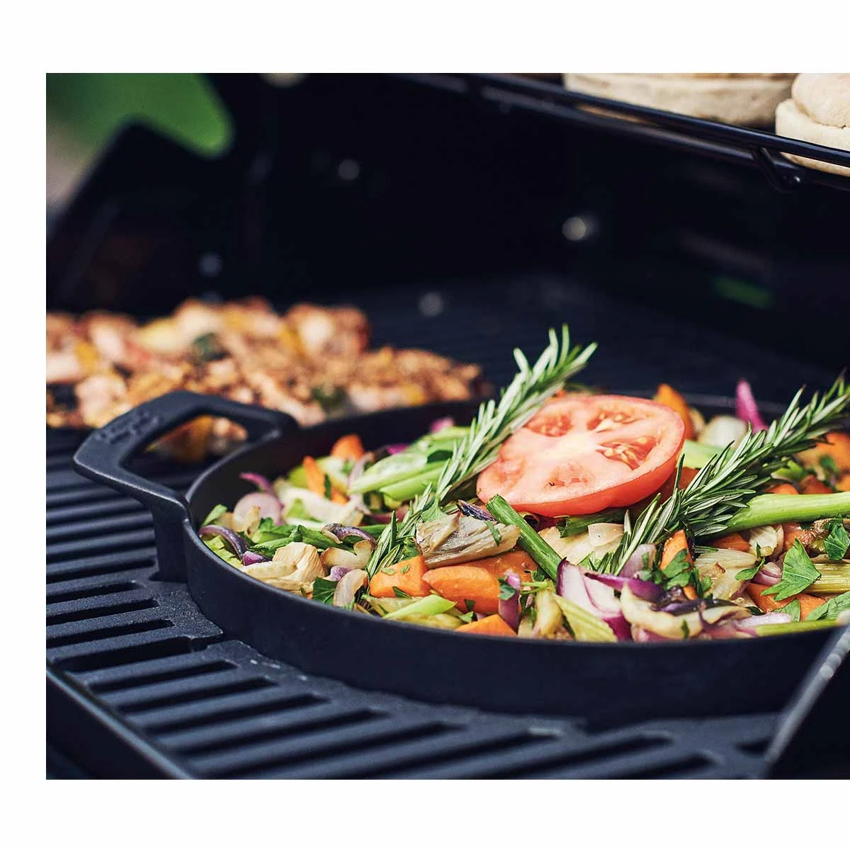 Mit dem Switch Grid seid Ihr für jeden Grill-Einsatz bereit: Egal, ob das Sear Grate für das scharfe Anbraten und ein gelungenes Branding, der Pizzastein für das Backvergnügen, der Geflügelbräter für knusprigen Fleischgenuss oder die Pfanne für köstliche Beilagen – was auch immer Ihr mit Eurem Grill vorhabt, ist jetzt nur noch eine Frage des Einsatzes. Und das Austauschen ist zudem besonders unkompliziert und schnell. Der emaillierte Gussrost mit herausnehmbaren Rundelementen bietet vielfältige Grillmöglichkeiten über passende Enders-Einsätze.
