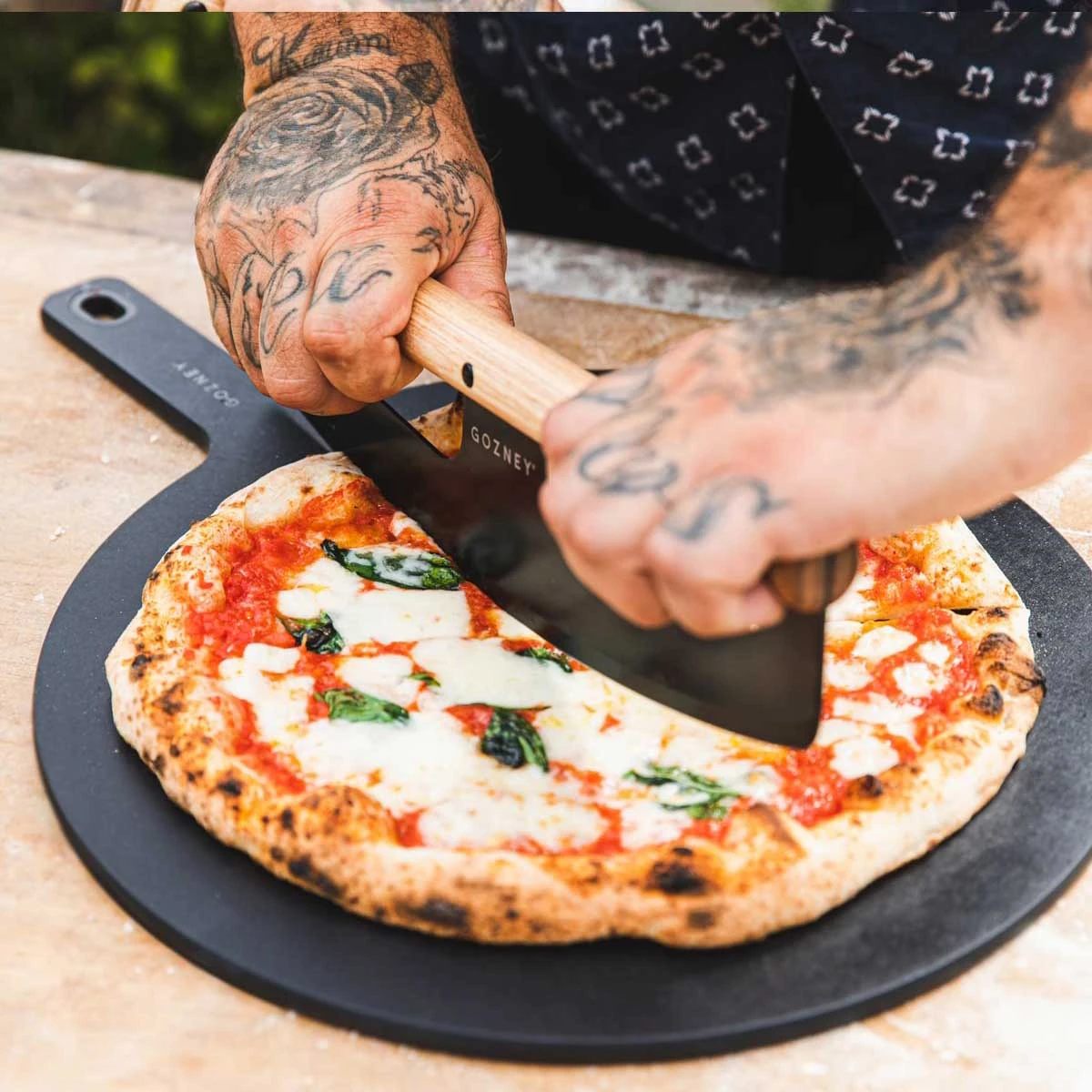 Das Auge isst bekanntermaßen mit: Auf dem schwarzen Servierteller von Gozney kommt Eure leckere Pizza . Auf der Fläche mit einem Durchmesser von 35,5 cm finden auch große Pizzen sehr stilvoll Platz und können dank des problemlos transportiert werden.