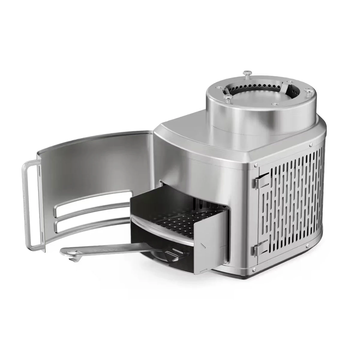 - Alternativ mit Holzkohle oder Briketts nutzbar