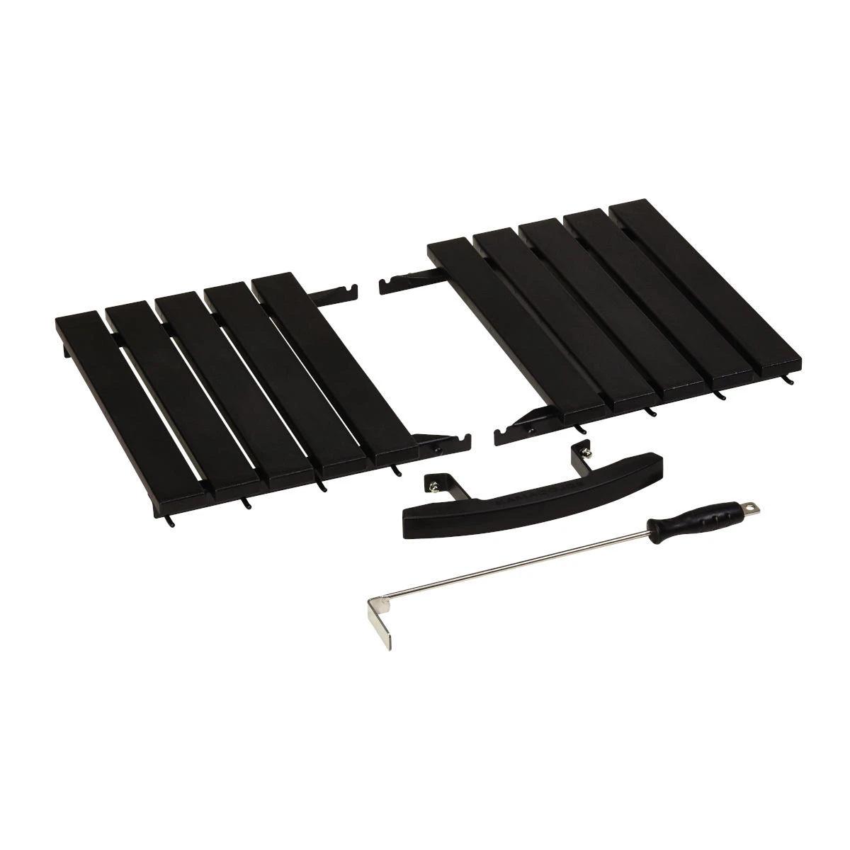 Mit diesem Erweiterungsset von Kamado Joe könnt Ihr Euren Keramikgrill Big Joe ganz einfach upgraden. Das Set besteht aus zwei Kunststoff Seitentischen, einem Griff, sowie einem Aschewerkzeug. Die beiden praktischen Ablagen aus strapazierfähigem Kunststoff bieten viel Platz für bereits gegartes Grillgut oder anderes Grillzubehör wie Gewürze, Grillzangen etc.