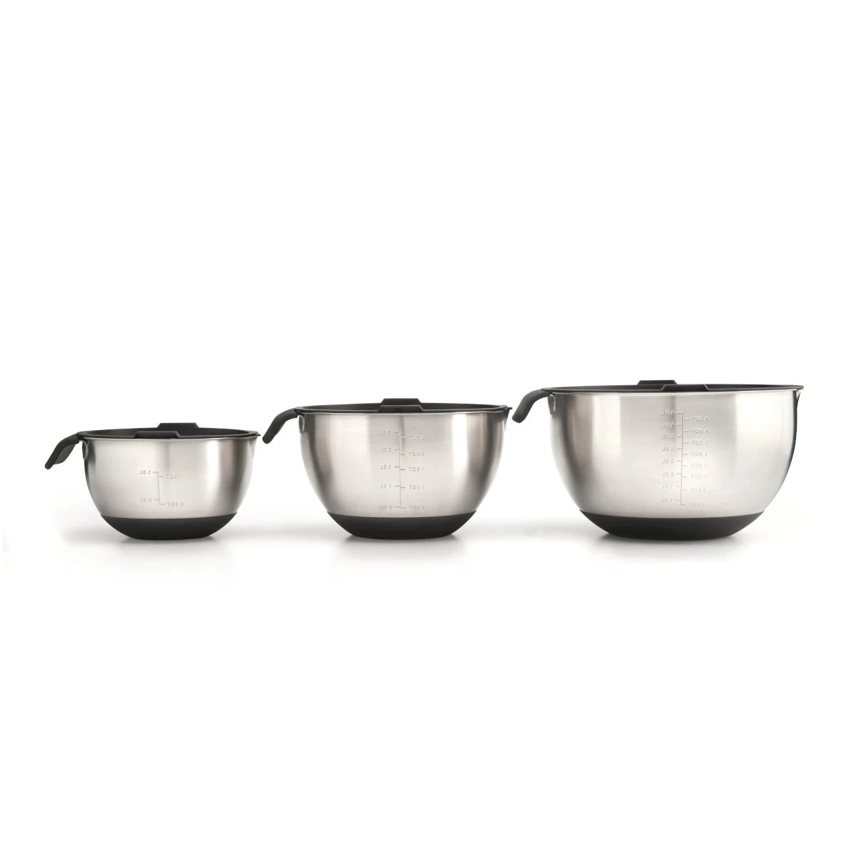 Die Edelstahlschalen in drei Größen sind drei praktische und stilvolle Helfer in der modernen Grillküche. Metrische (Liter) und imperiale Maßeinheiten findet Ihr innen gut lesbar, luftdichte Deckel halten Eure Lebensmittel frisch. Mit Silikon an Griffen und Schüsselunterseiten lässt sich sicher und ohne Verrutschen arbeiten, der Ausgießer erleichtert das Umfüllen der Zutaten.
