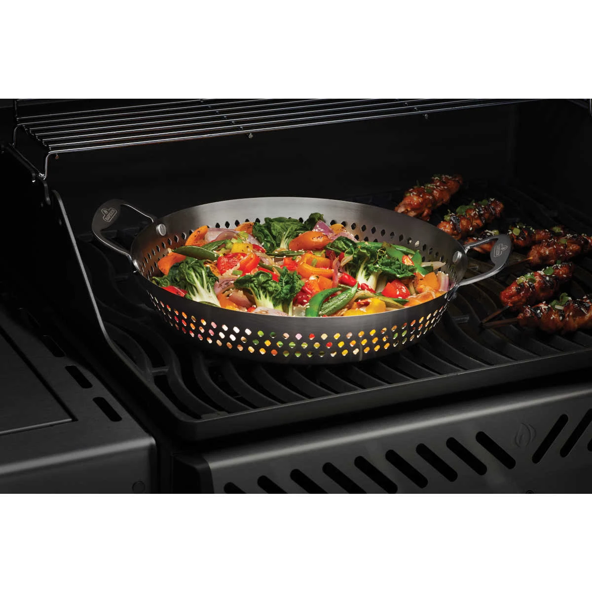 Der Napoleon Gemüsekorb aus Edelstahl eignet sich ideal zum Grillen von kleinerem Grillgut. Das perforierte Design und der Edelstahl leiten die Wärme ideal für das nötige Grillaroma. Dank der integrierten Haltegriffe lässt sich der Gemüsekorb mühelos schwenken und verschieben – wir empfehlen den Gebrauch einer Grillzange oder -pinzette sowie hitzebeständigen Handschuhen. Durch das breite und tiefe Design eignet sich der Wok zum Kochen für mehrere Leute oder Gruppen. Da er spülmaschinenfest ist, lässt er sich leicht reinigen.