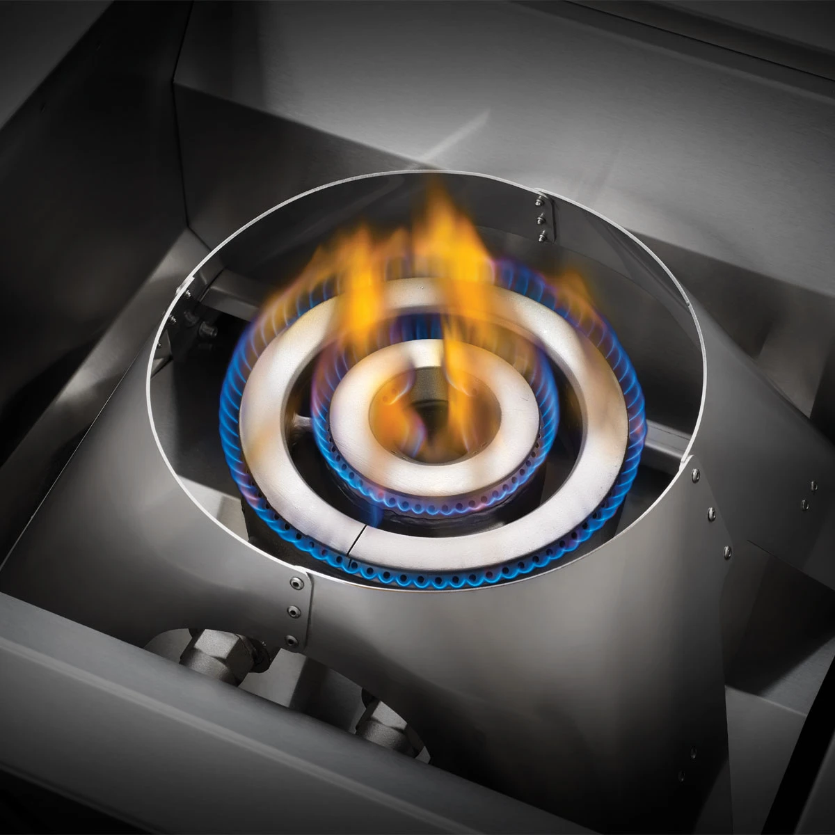Der Topfring aus massivem Edelstahl verschafft selbst großen Töpfen und Pfannen einen absolut und bietet vor allem für Liebhaber von Wokgerichten ein ganz besonderes