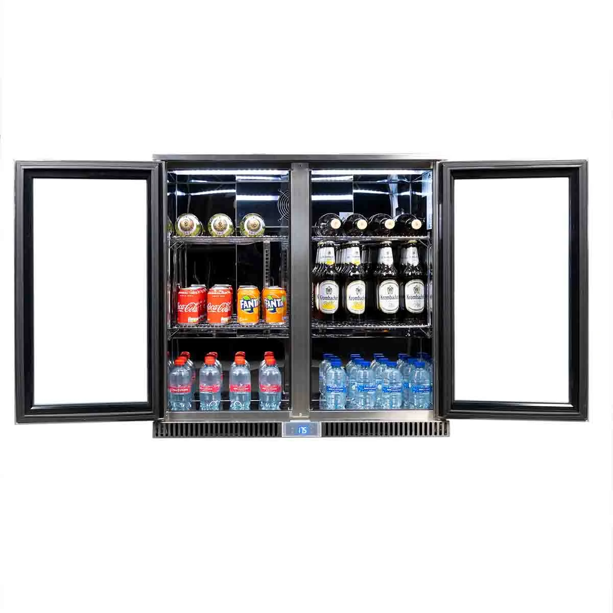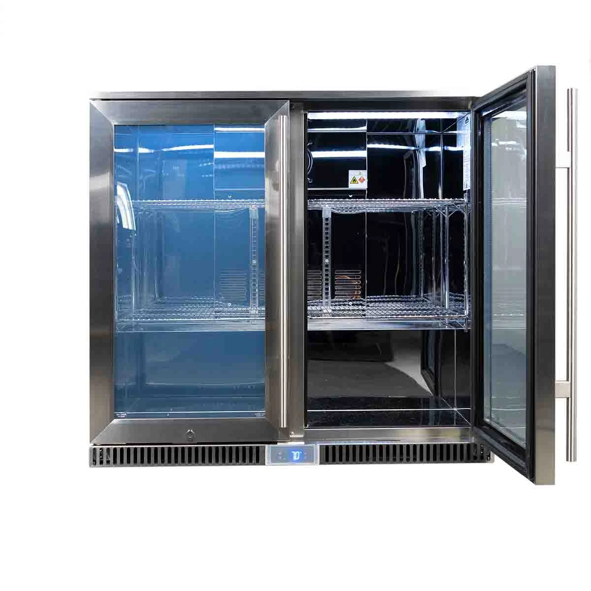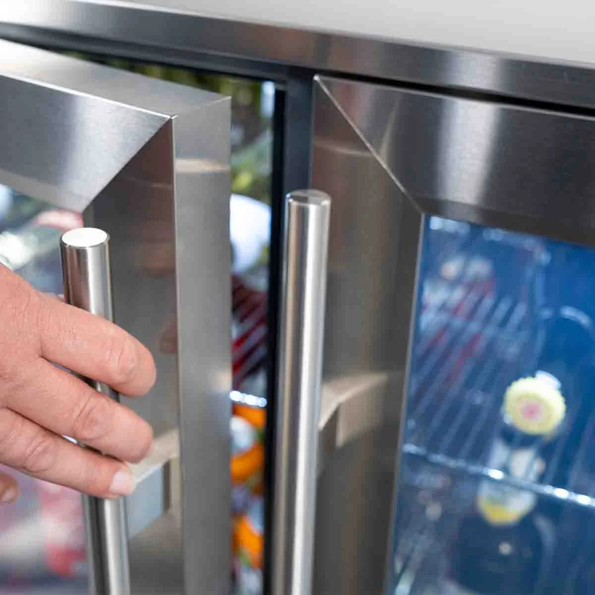 Doppeltüriger Napoleon® Getränkekühler für den Außenbereich mit 210 Litern Fassungsvermögen bei einem Energieverbrauch von 1,65 kW / h. Funktioniert bei Temperaturen von -5 bis 40 Grad Celsius und besitzt ein wasserdichtes IP24-Design.