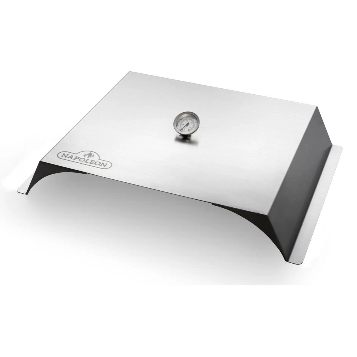 Massiver Napoleon Pizza-Aufsatz für die perfekte Oberhitze über dem Pizza-Stein. Dank diesem Zubehör gelingt Euch die ultimative Pizza auf dem Napoleon Grill. Der Boden der Pizza wird knusprig und der Käse zerläuft durch die gestaute Hitze unterm Aufsatz.