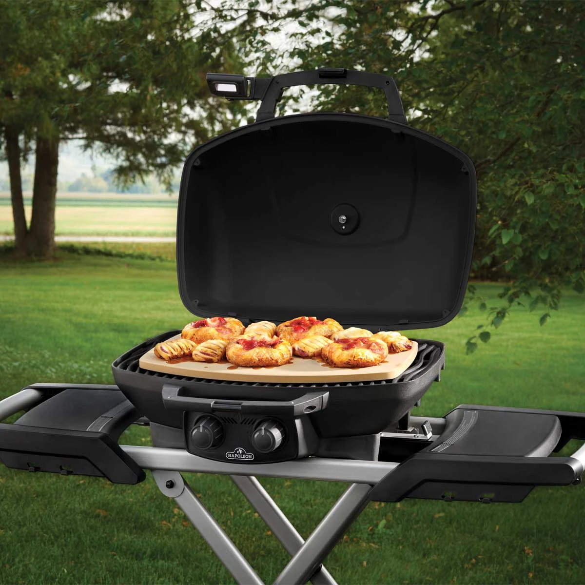 Pizza backen unterwegs ist mit dem TravelQ von Napoleon und dem passenden Pizzastein gar kein Problem. Dieser Pizzastein passt mit seiner speziellen Form perfekt auf die mobilen Grills der Napoleon TravelQ-Serie. Das Material Cordierit heizt sich mit dem Grill auf und gibt die Hitze gleichmäßig ab. Außerdem entzieht es dem Teig die Feuchtigkeit – beste Voraussetzungen also für einen knusprigen Pizzaboden mit fluffigem Inneren. Eignet sich auch wunderbar für Croissants, Burgerbuns, Plätzchen, Kuchen und andere Backwaren.