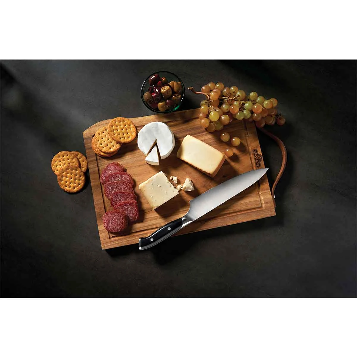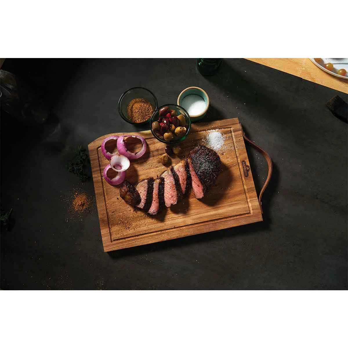 Überzeugt euch selbst von der Qualität und der hochwertigen Verarbeitung des Napoleon President Edition Schneidebrett inkl. PRO Chefkochmesser. Das perfekte Geschenk für den ambitionierten Grillmeister! Das Schneidebrett aus Akazienholz verfügt über einen Griff aus echtem Leder.