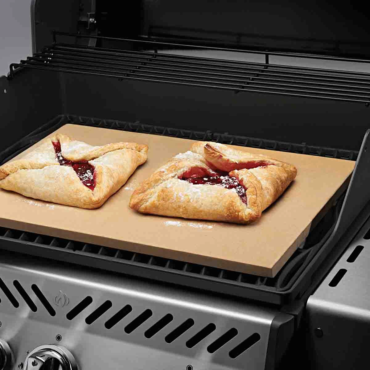 Eckiger Pizzastein? Ja! Denn damit nutzt Ihr den Platz Eurer Grillfläche oder Eures Backofens perfekt aus! Der rechteckige Pizza Stein von Napoleon passt ideal zur Grillserie Rogue, denn dort deckt er Dreiviertel der Grillfläche ab. Natürlich könnt Ihr ihn auch in allen anderen Gasgrills von Napoleon (außer TQ-Serie und Triumph T325) nutzen.