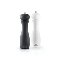Das zweiteilige Set von Napoleon besteht aus Salzmühle und Pfeffermühle. Die matte Soft-Grip Oberfläche der Mühlen hat ein modernen Design und liegt gut in der Hand. Das einstellbare Keramikmahlwerk ist für feine sowie grobe Salz- und Pfefferkörner geeignet. Die qualitativ hochwertige Verarbeitung der Würzmühlen ist für eine jahrelange Verwendung ausgelegt.