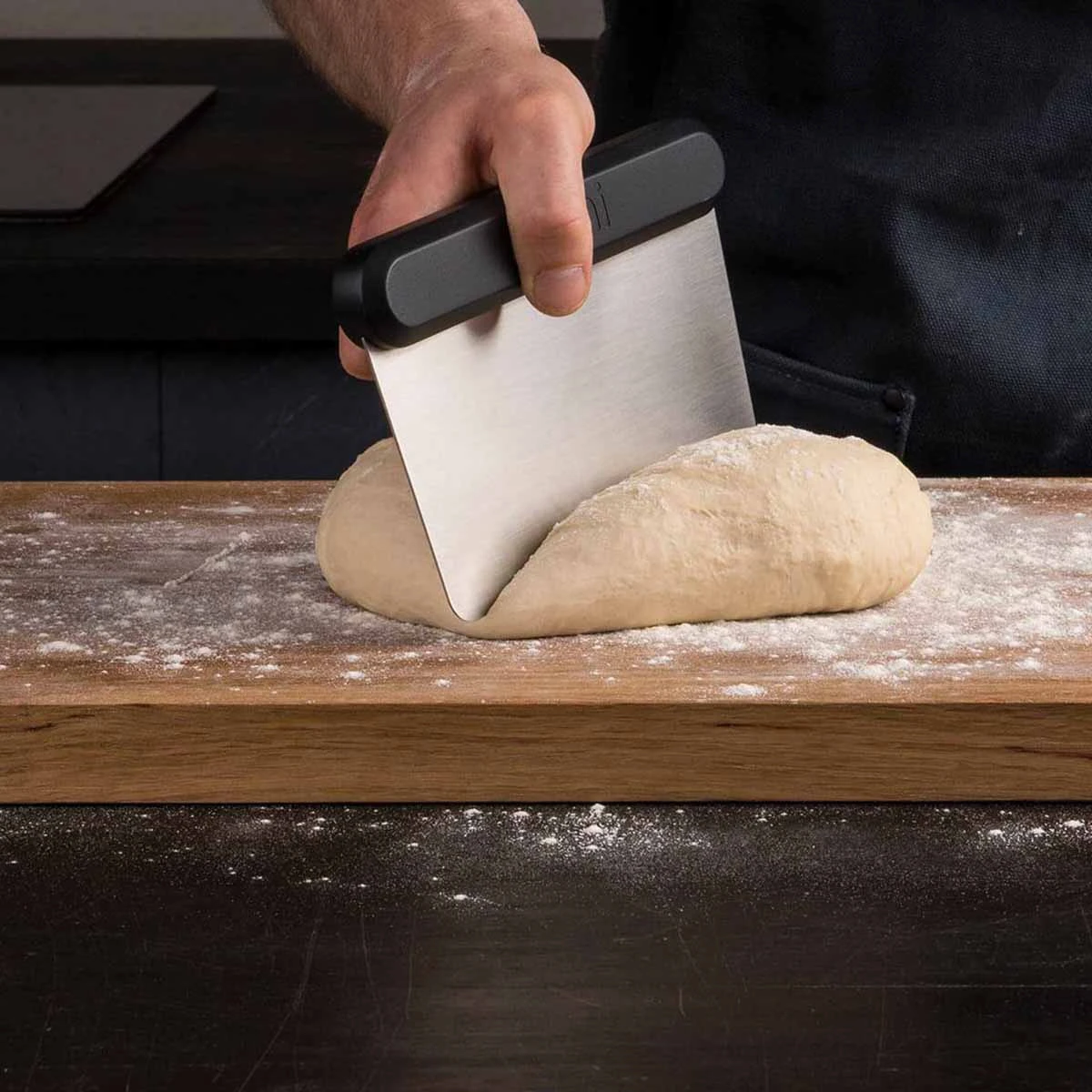 Er klebt, zieht sich zusammen und tut alles außer das, was er soll: Um Pizzateig zu bändigen eignet sich der Ooni Pizzateigschaber. Dank seiner stabilen Edelstahlkante und dem handlichen Griff aus glasfaserverstärktem Nylon lässt sich Pizzateig damit ohne Probleme wenden und präzise portionieren.