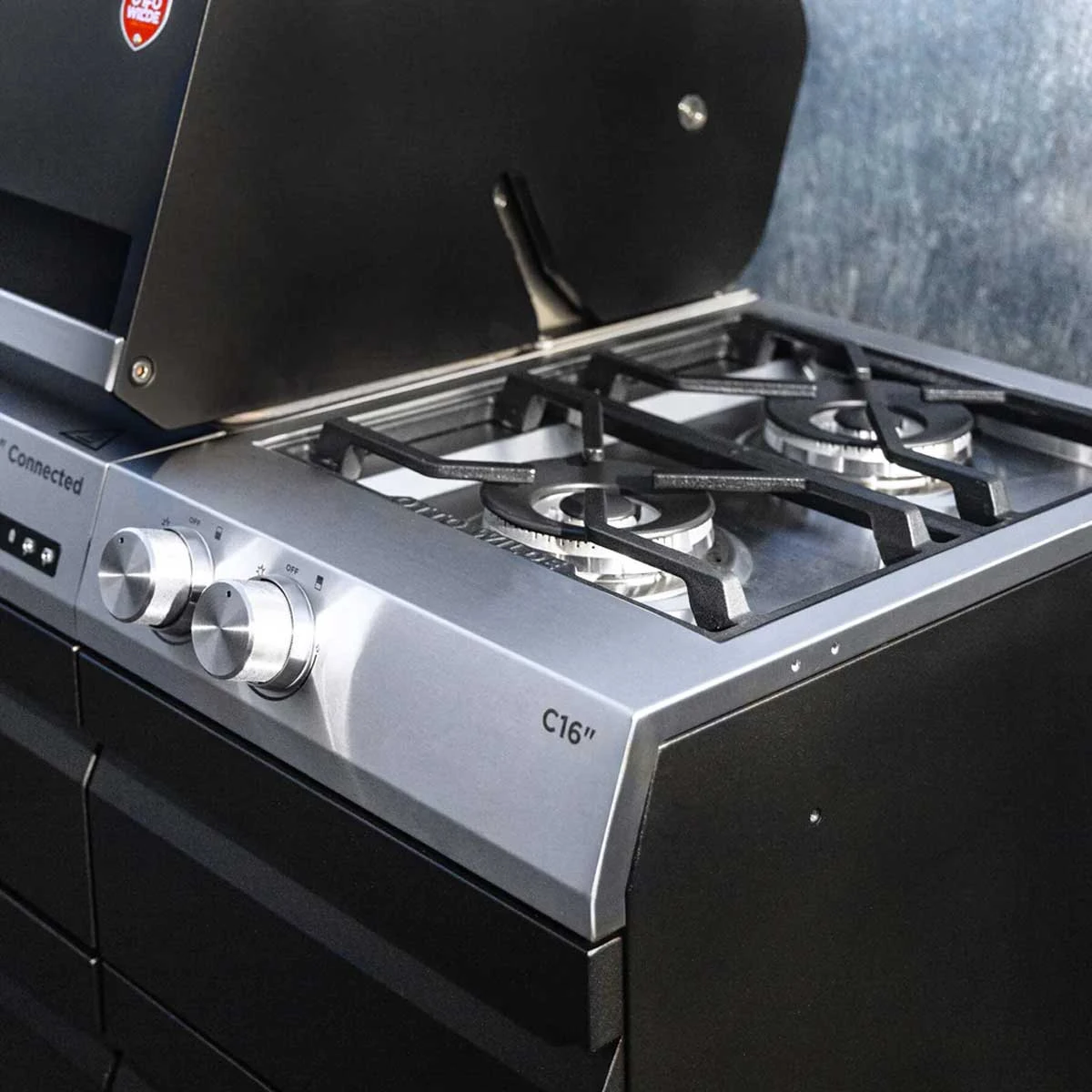 Zu einem gelungenen Außenküchen-Leben gehören neben den knusprig gegrillten Hauptspeisen auch , Vorspeisen und Desserts. Egal ob leckere Saucen, Pasta, Bratfisch, knackiges Wokgemüse, Suppen oder Salzkartoffeln: Mit dem praktischen C16 Modul kocht Ihr ab sofort das komplette Grillmenü draußen.