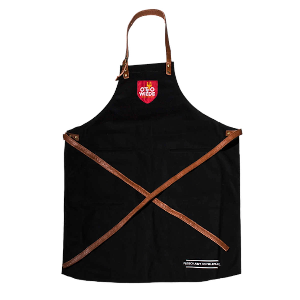 Die Otto Wilde Schürze gefertigt aus dickem Baumwollstoff ergänzt Euren O.F.B. perfekt. Einstellen lässt die Schürze sich durch die hochwertigen braunen Lederriemen. Die Schürze ist schlicht in der Farbe schwarz gehalten, sodass diese nicht vom Wesentlichen ablenkt – dem Grillmeister!