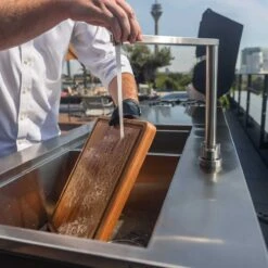 Die Otto Wilde Grillplatte ist mit einer ausgestattet, leicht zu reinigen und sogar spülmaschinengeeignet. Mit den optional erhältlichen lässt sich die problemlos transportieren, einsetzen und in den Unterschränken der Otto Wilde Plattform Außenküchen-Module verstauen.
