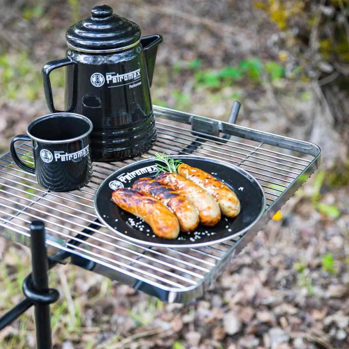 Mit dem stabilen Feueranker von Petromax verwandelt Ihr Euer Lagerfeuer und andere Feuerstellen schnell und einfach in eine Koch- und Grillstelle. Egal ob Ihr ein offenes Lagerfeuer beim Camping macht oder eine Feuerschale in den Garten stellt – bei ausreichend fester Bodenbeschaffenheit ist die Hauptstange ruckzuck neben der Feuerstelle im Boden fixiert. Sie kann dann ganz individuell mit den drei schwenkbaren Armen bestückt werden, die an den Enden praktische Einkerbungen aufweisen.