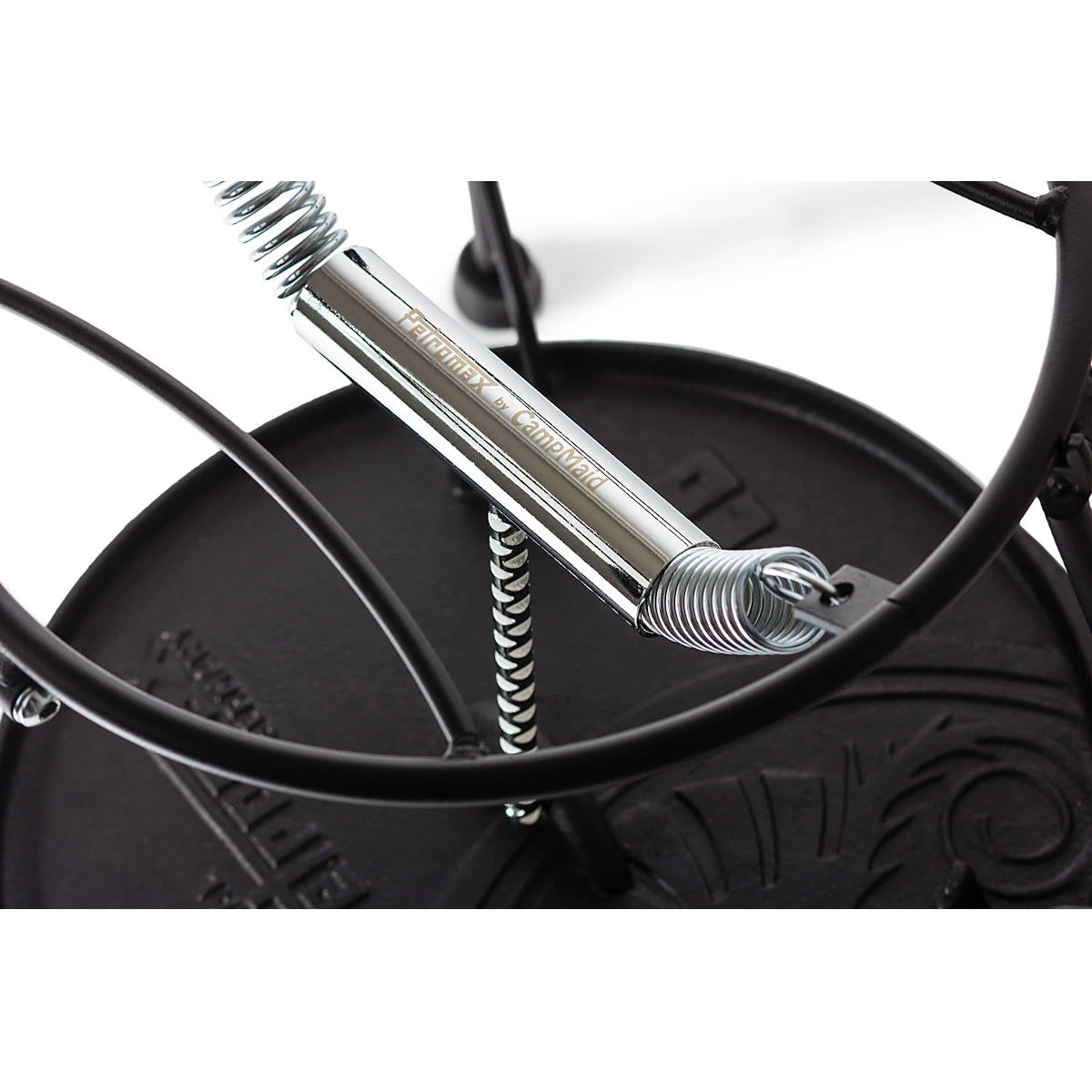 Mit diesem Deckelhalter könnt Ihr den Deckel inklusive glühender Briketts greifen und abstellen. Der Deckelhalter pro-ft ist optimal für die Feuertöpfe ft6 bis ft12 geeignet und kann zusammengeklappt in einem Petromax Feuertopf ft6 transportiert werden.