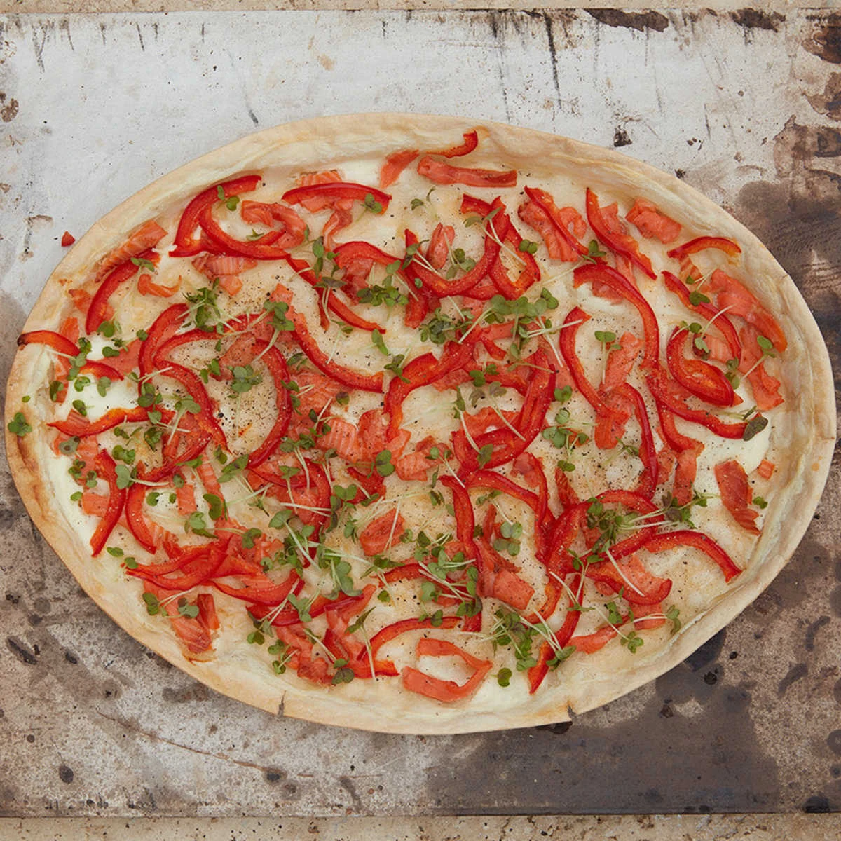Auf dem vorgeheizten Pizzastein wird der Boden der Pizza sofort knusprig ohne anzubacken. Ebenso lassen sich hauchdünne Flammkuchen schnell und einfach zubereiten.
