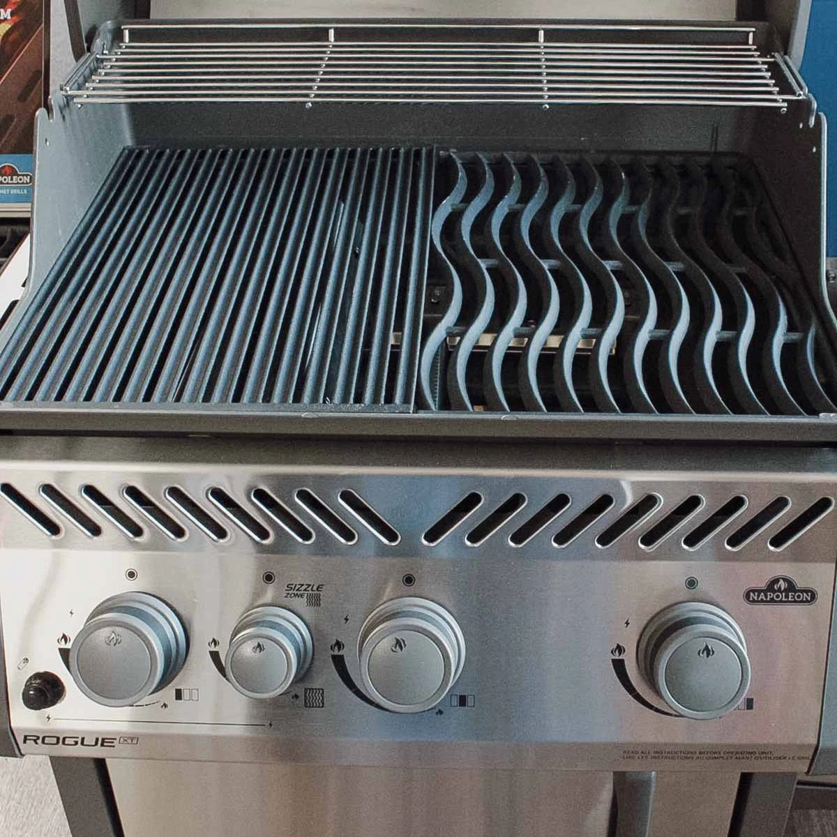 Der gusseiserne Grillrost von SANTOS passt perfekt auf den Napoleon Rogue 425.