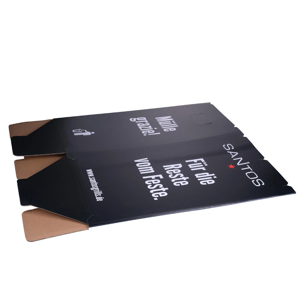 Ihr macht eine Grillparty, doch wohin mit dem Müll? Mit der faltbaren Müllbox von SANTOS weist Ihr Euren Gästen ansprechend und humorvoll den richtigen Ort für Essensreste & Co. Zusammenfaltbar und wiederverwendbar, durch das geringe Gewicht auch perfekt zum Mitnehmen geeignet.