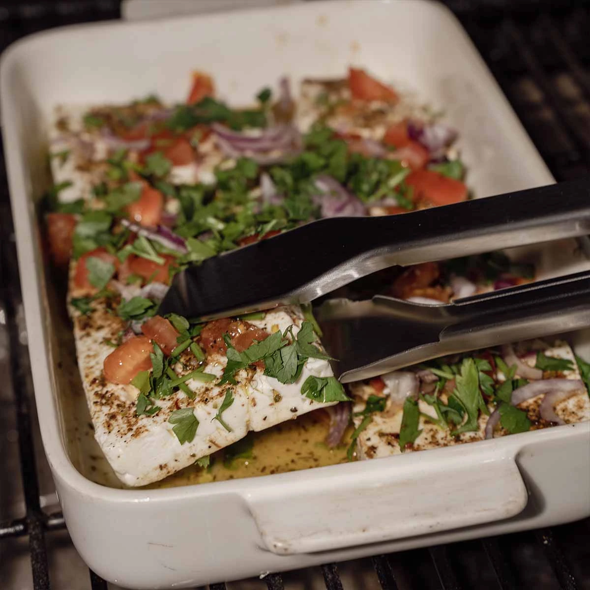 Der eckige Zangenkopf verfügt über mühelos unter die Zutaten, während die das Grillgut fest und sicher greift. T-Bone-Steak, Würstchen, Garnelen, Zucchinischeiben, Hähnchenschenkel – die SANTOS Grillzange ist für große und kleine Zutaten perfekt geeignet und ermöglicht Euch .