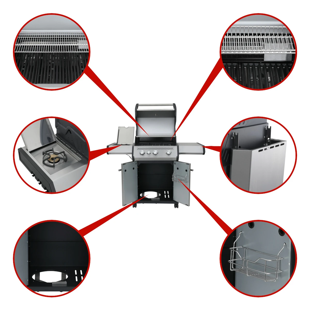 - 3 Edelstahl Hauptbrenner mit Flammenverteilern