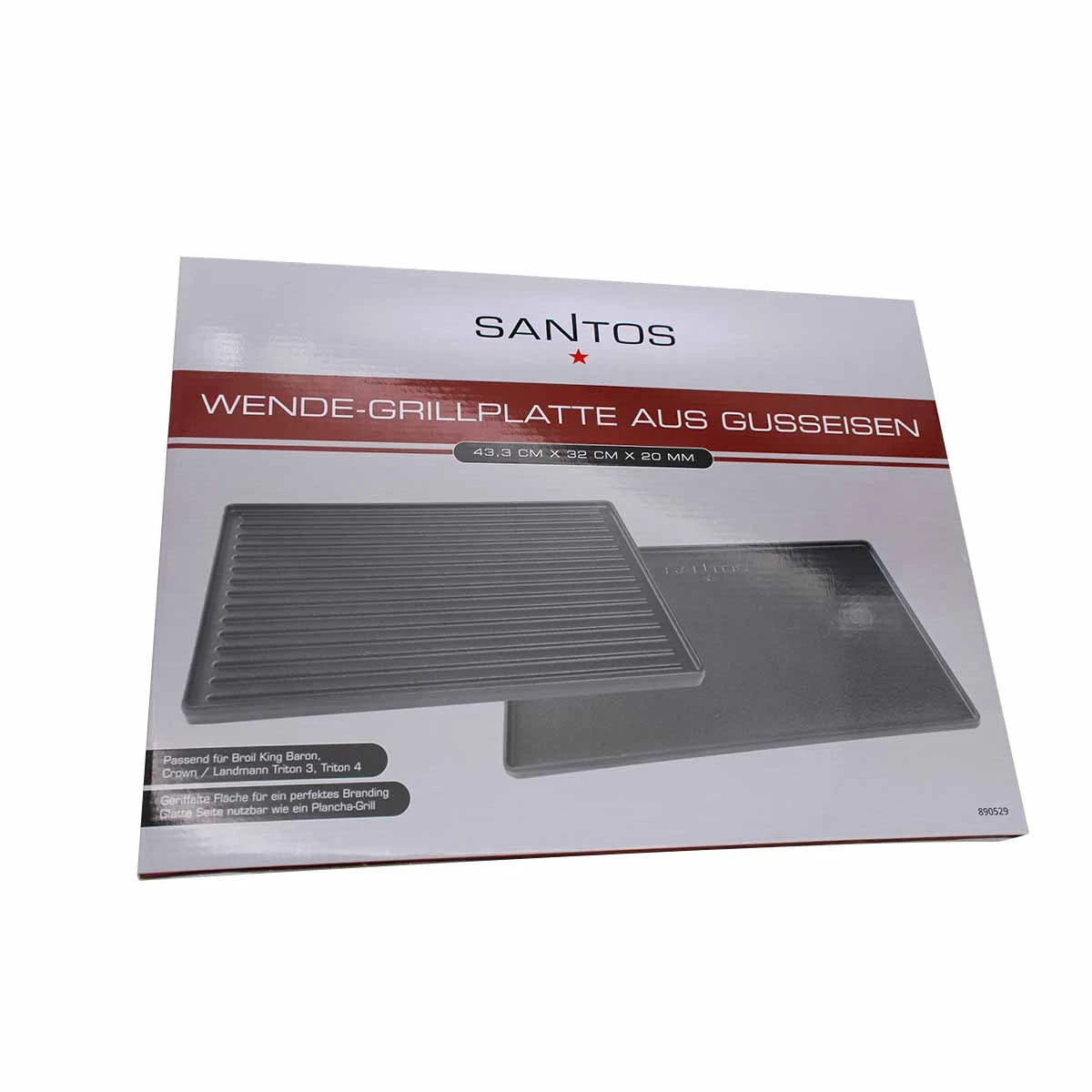 Die wendbare Grillplatte könnt Ihr ganz einfach anstatt zwei Grillrost-Elemente verwenden und beidseitig nutzen. Sie ist passgenau einsetzbar und bildet mit dem angrenzenden Grillrost eine ebene Fläche – so bleibt alles an seinem Platz und die vorhandene Grillfläche wird optimal genutzt. Je nach Bedarf kann die glatte oder die geriffelte Seite benutzt werden. Mit gleichmäßiger Wärmeverteilung und optimaler Hitzespeicherung sorgt die gusseiserne Griddleplatte von SANTOS für perfekte Grillergebnisse.