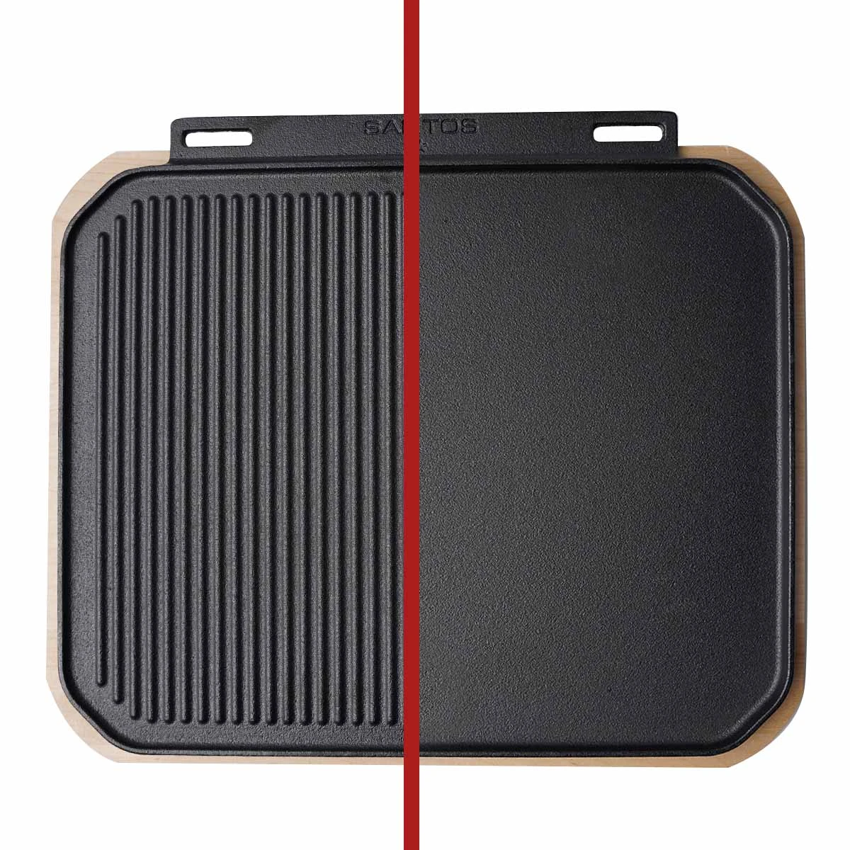 Scharfes Angrillen für knackige und feinste , Grillen und Brutzeln wie auf einer sowie direkt vor den Augen der begeisterten Gäste: In der SANTOS Wendeplatte aus Gusseisen steckt eine Grillplatte mit einer Vielzahl an Funktionen. Sie ist flexibel und wird dafür ganz einfach auf den Grillrost gelegt.