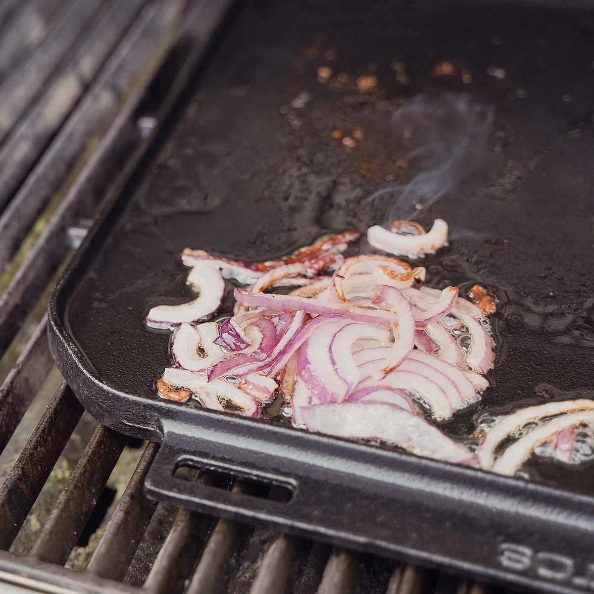 Ob Kohle- oder Gasgrill, Induktions-, Gas- oder Elektroherd, Backofen oder Lagerfeuer – die robuste Grillplatte aus Gusseisen versorgt Euch überall mit köstlichen Röstaromen und optimalen Bratergebnissen. Sogar auf dem Infrarot-Keramikbrenner könnt Ihr sie verwenden: Wichtig dabei ist, dass der Brenner-Bereich nicht abgedichtet ist, alternativ lässt sie sich auch auf einen erhöhten Rost legen.