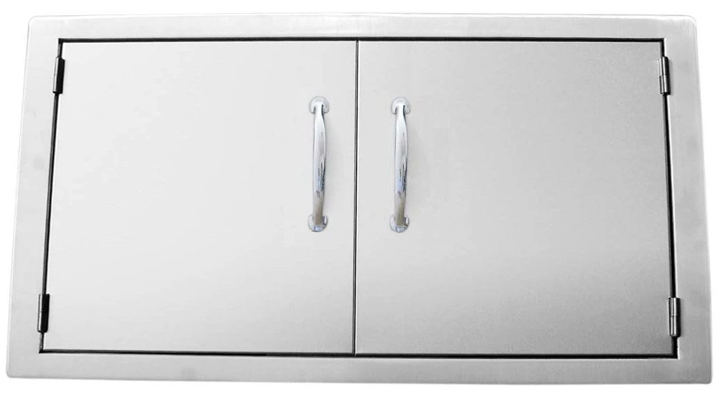 Mittels bereits vorgebohrter Befestigungslöcher lässt sich die Doppeltür aus Edelstahl einfach an der Außenwand befestigen. Unabhängig vom vorhandenen Mauerwerk, schließt der Rahmen bündig ab, sodass Dichtigkeit gegenüber äußerer Einflüsse gewährleistet werden kann. Zusätzlichen Verschlussschutz bieten oben wie unten an der Tür angebrachte Magnete. Die Tür fügt sich optisch in das hochwertige Design der SUNSTONE Einbaugrills.