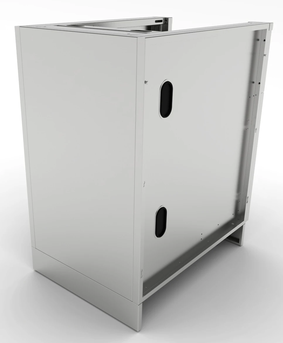 Egal, ob Seitenbrenner oder Waschbecken: Dank des Geräteunterschrankes aus Edelstahl mit belüfteter Fußleiste, integriert Ihr die unterschiedlichen Module exakt in Eure Küchenzeile.