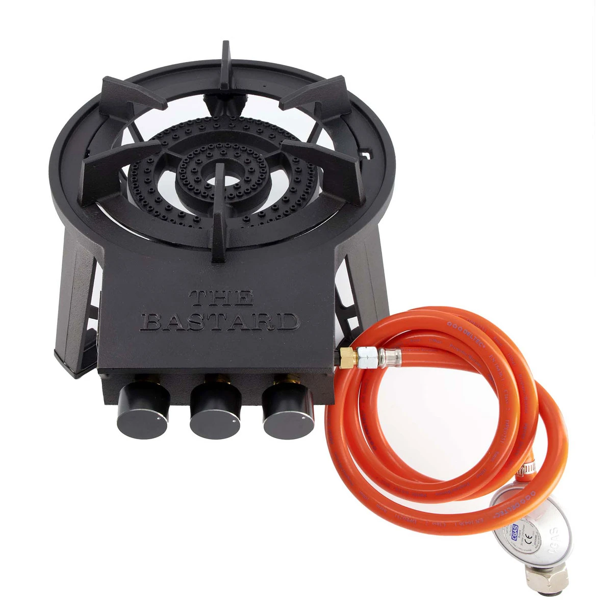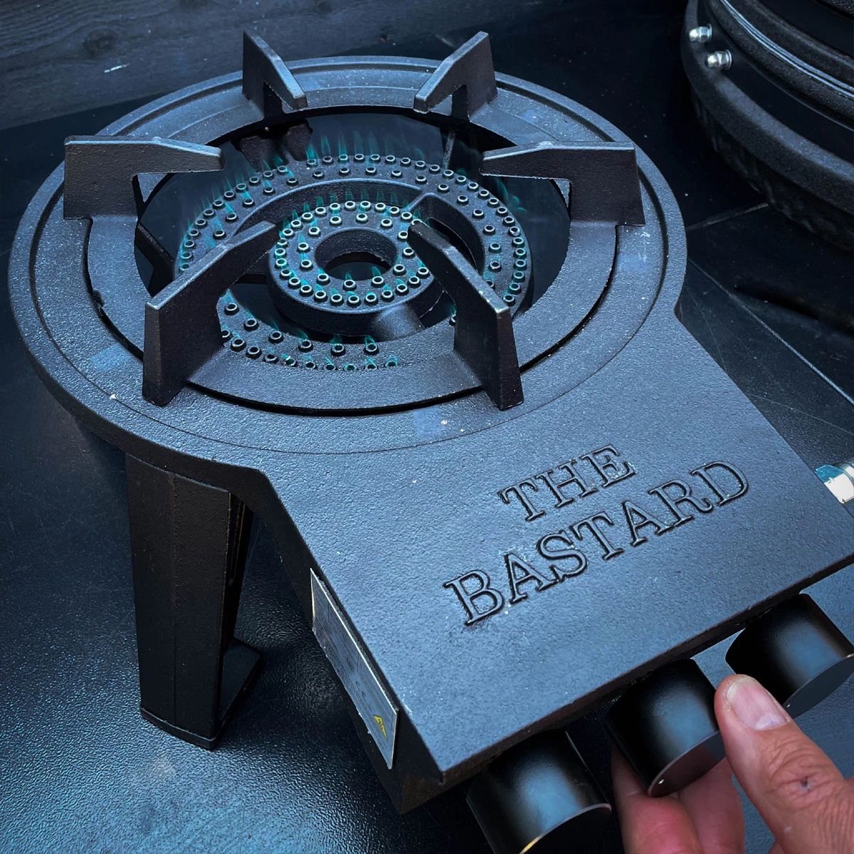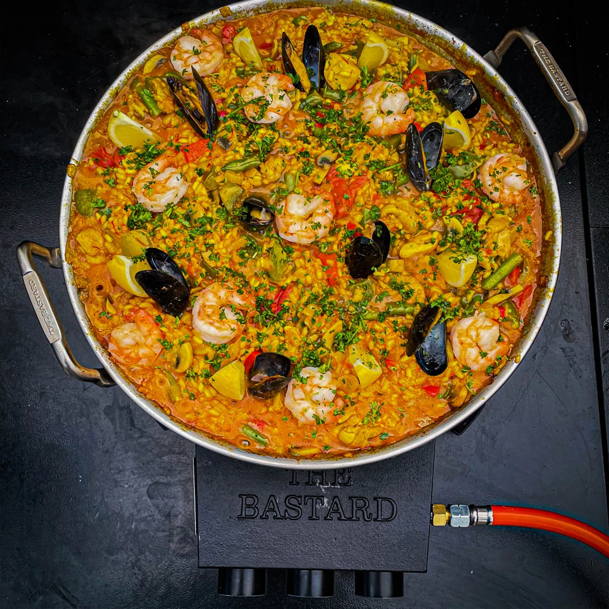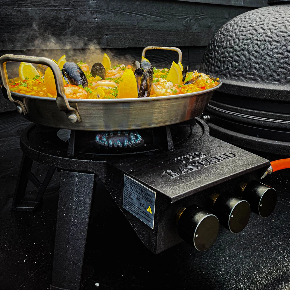 Einfach an eine anschließen und los geht’s! Mit seinen 3 stabilen Beinen platziert Ihr den l auf einem stabilen Tisch oder dem Boden. Verwendet den Brenner in Kombination mit einer Paellapfanne, einem Wok oder einer anderen Grillpfanne. So könnt Ihr auf Eurem Kamado-Grill Reis- und Pastagerichte langsam garen, während Ihr gleichzeitig auf dem Wokbrenner Eure Zutaten scharf anröstet.