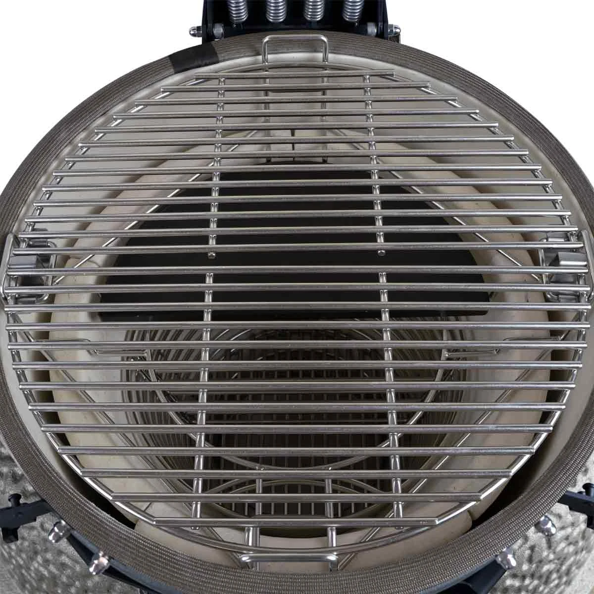 - Die sorgt für noch mehr Platz auf dem Grillrost: Der traditionell runde Kamado-Deckel lässt am Rand der Grillfläche wenig Platz nach oben. Beim The Bastard VX dagegen stößt dank der nichts an den Deckel – damit Ihr Euren Grillrost auch bis an den Rand grenzenlos belegen könnt.